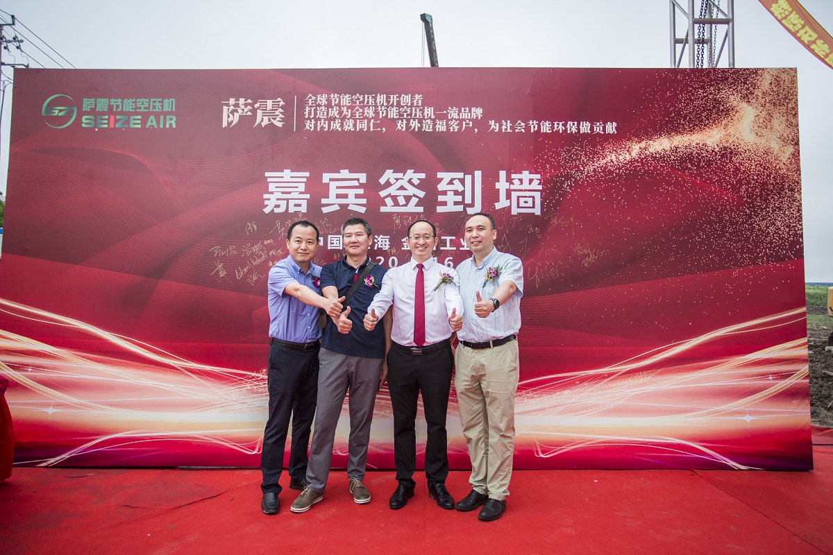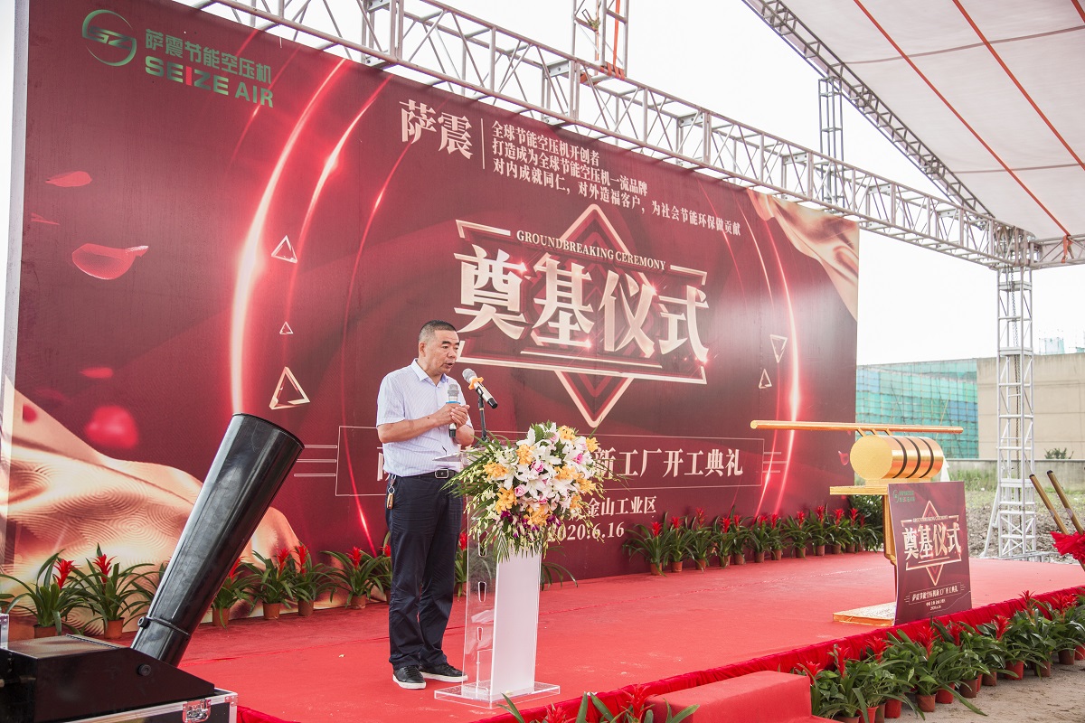 2020年6月16日早上10點08分,薩震節(jié)能空壓機項目奠基儀式方案在上海市金山工業(yè)區(qū)金流路(廣業(yè)路路口)工地會場如期舉行,良辰吉日,伴隨著陣陣喜慶的音樂,薩震總經理程總攜各部門領導及金山區(qū)相關部門領導,以及工程總包方與大家一起分享薩震的努力與成就,共同見證薩震節(jié)能科技的盛大啟航!