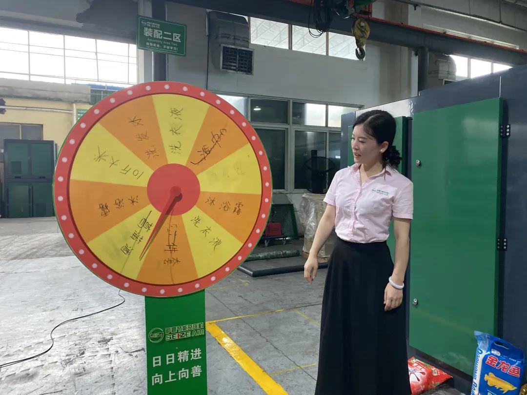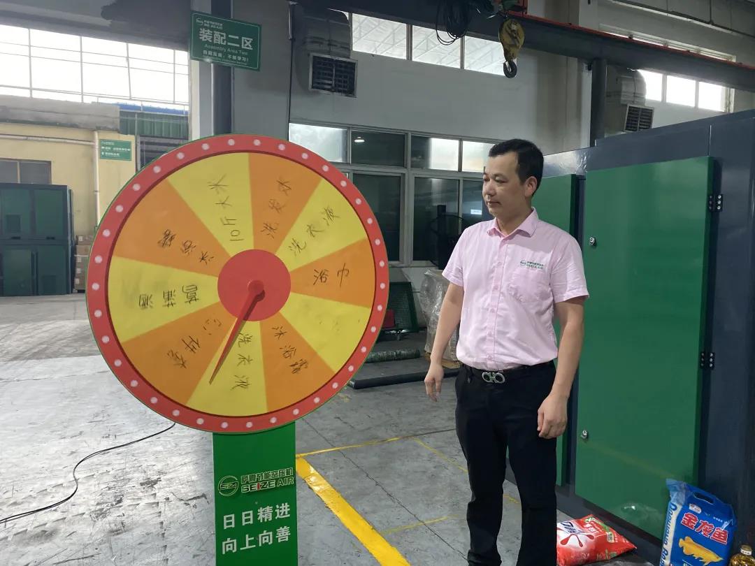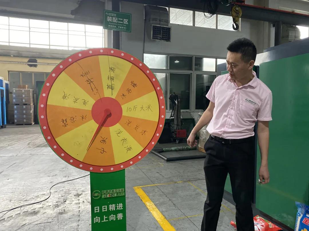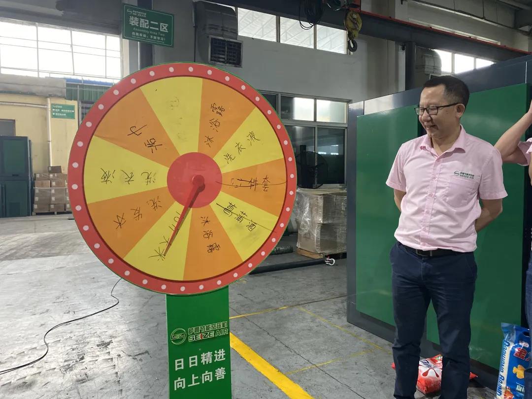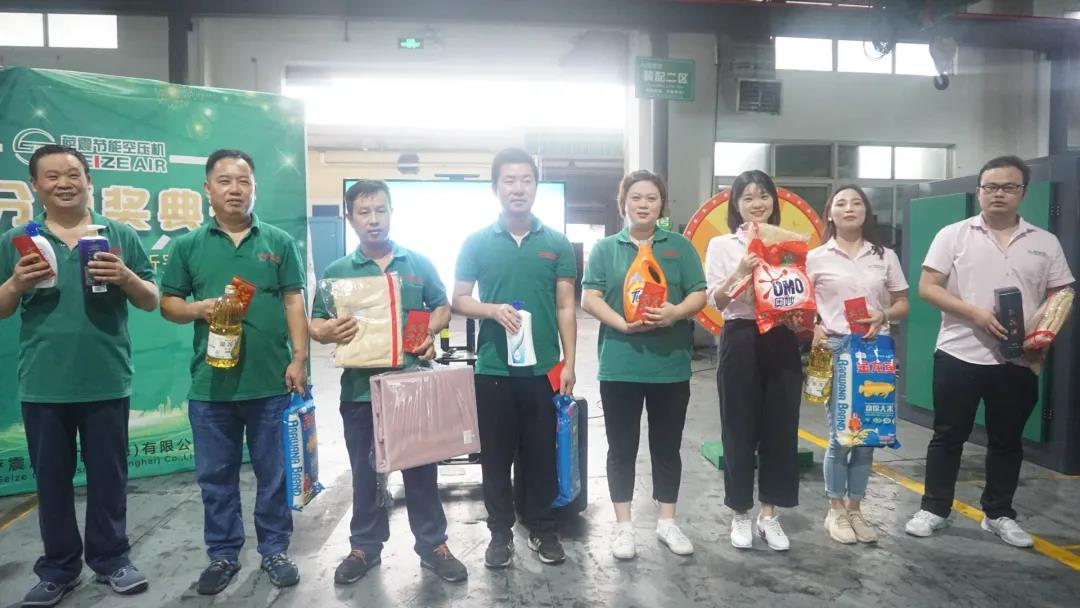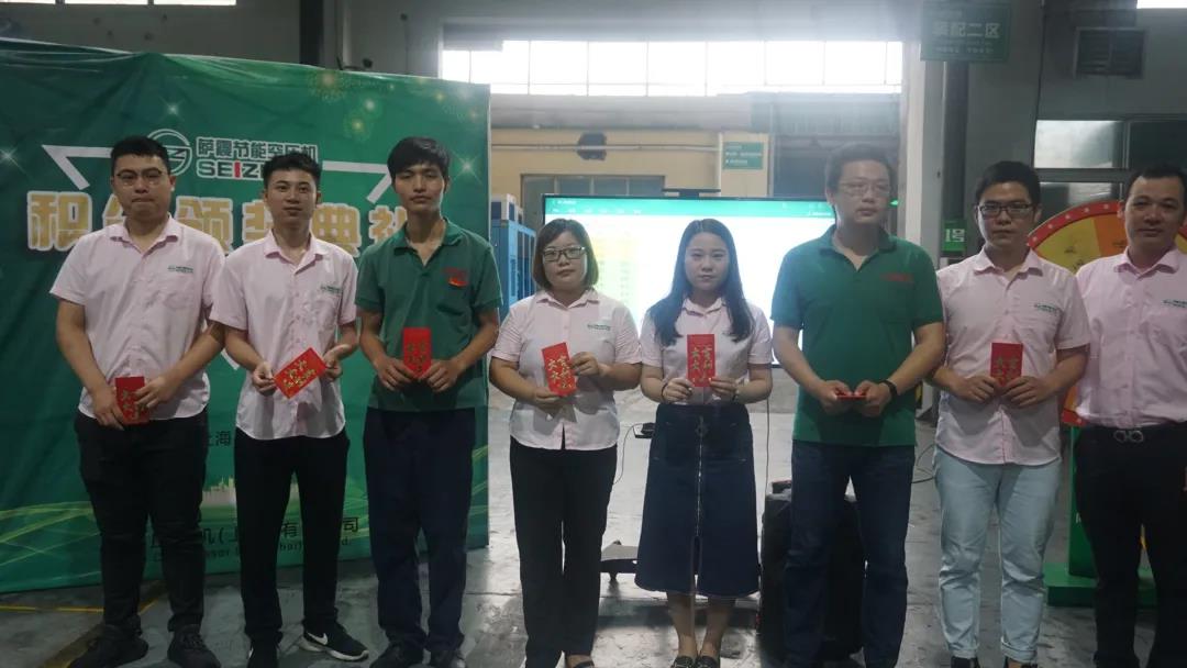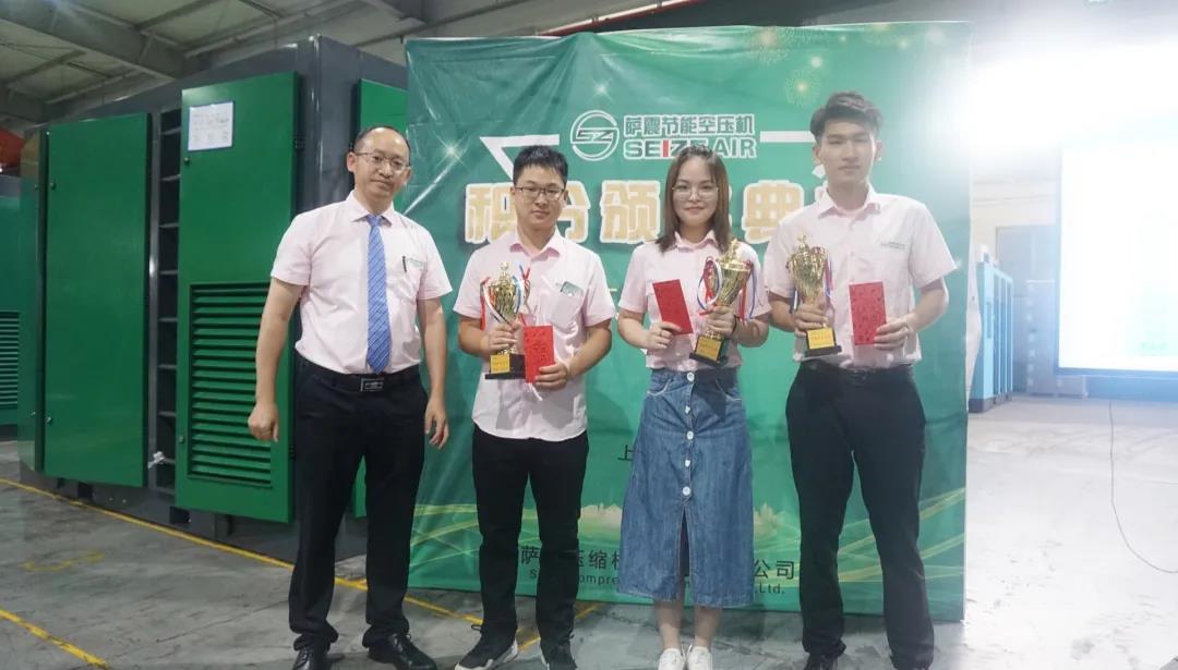 薩震節(jié)能空壓機第二季度積分獎勵頒獎進行中,