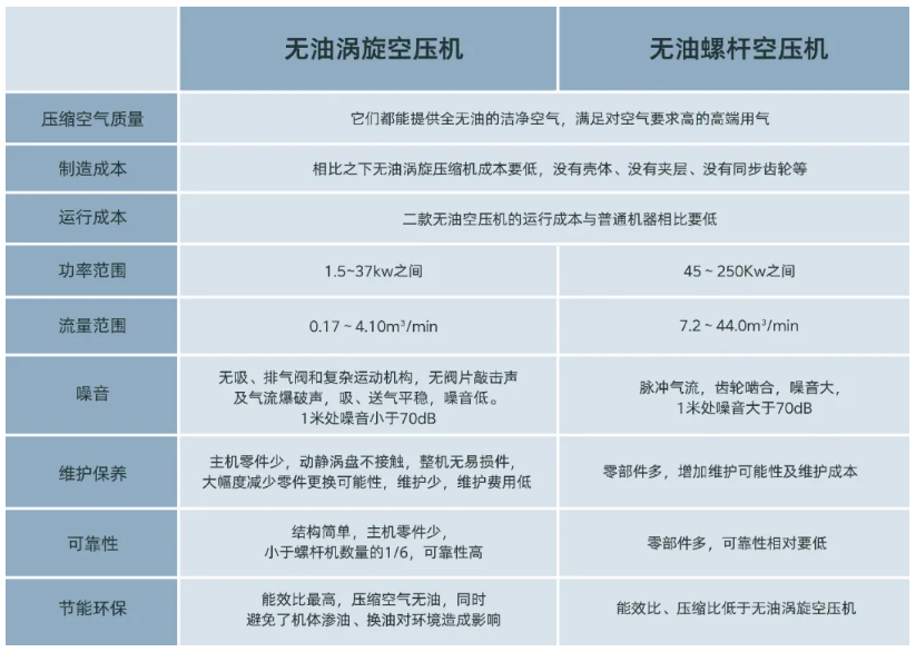 很多用戶想知道無油螺桿空壓機與無油渦旋空壓機的區(qū)分,今天他們來了。兩者之間有很多共同點,又有許多不同之處,下面我們通過工作原理、詳細對比數(shù)據(jù)、優(yōu)勢及應用場景等幾個方面進行對比區(qū)別。