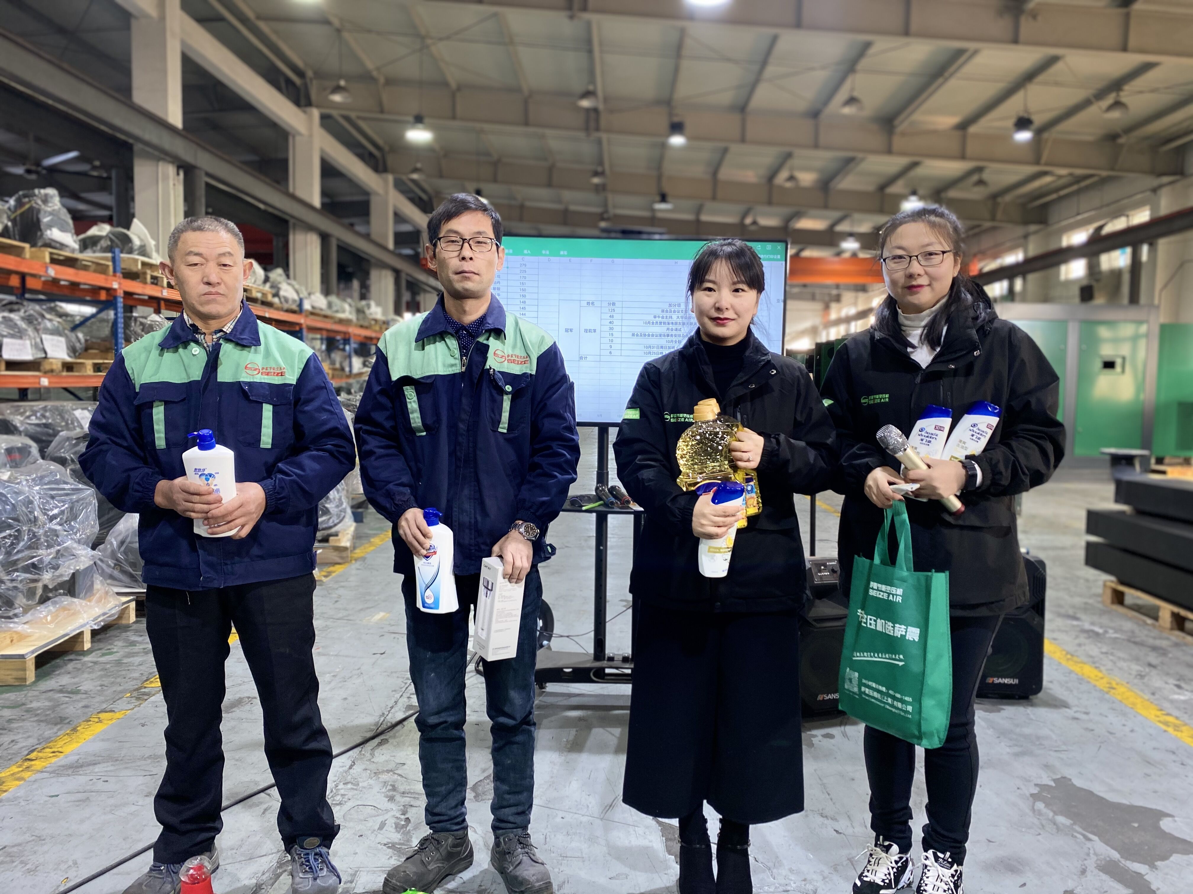 ▲積分前三與薩震節(jié)能空壓機總經(jīng)理程總合影▲