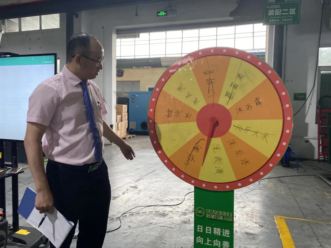 薩震節(jié)能空壓機第二季度積分獎勵頒獎進行中,
